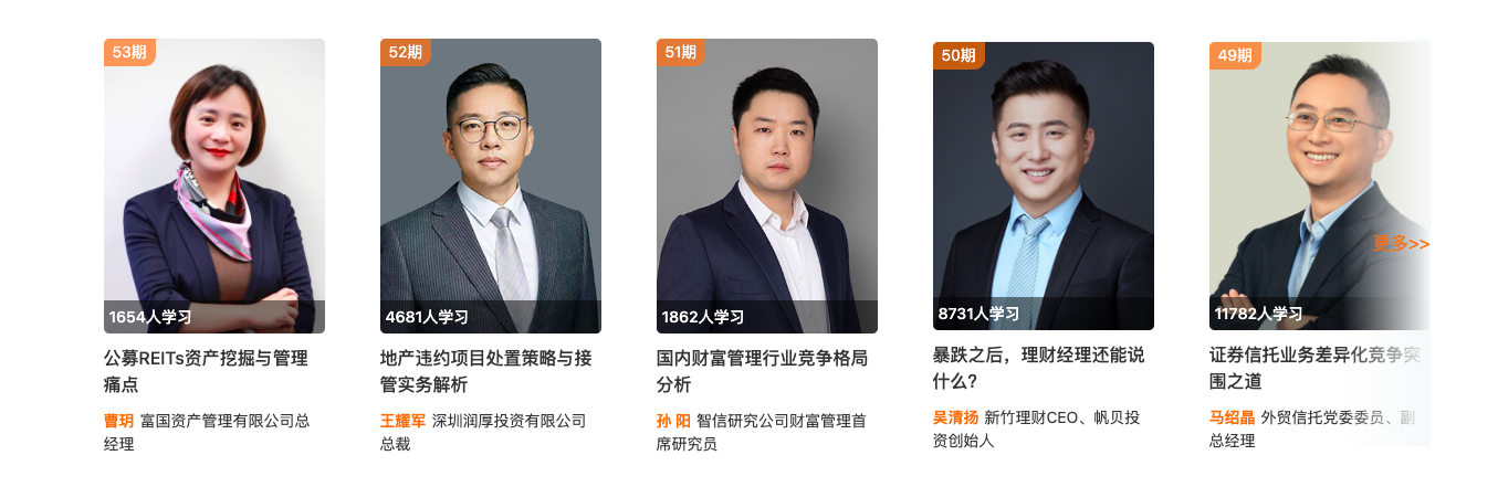自上線以來,資管云堅持每周上新,從未間斷;資管云堅持在深耕業(yè)務一線的專家中挖掘講師,保障內(nèi)容接地氣、有深度;堅持多渠道收集用戶反饋,不斷精進服務,陪伴金融從業(yè)者職業(yè)成長。