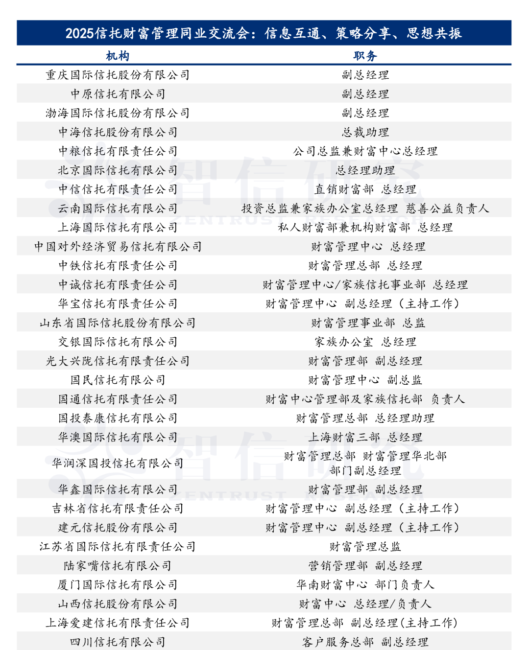 接下來,智信研究將持續(xù)關(guān)注信托財富管理領(lǐng)域,通過一系列閉門交流活動,為市場各方提供交流和溝通的平臺,同時結(jié)合市場熱點和業(yè)務重心進行持續(xù)優(yōu)化,聚焦信托公司財富管理展業(yè)中的關(guān)鍵問題,為用戶創(chuàng)造更大價值。